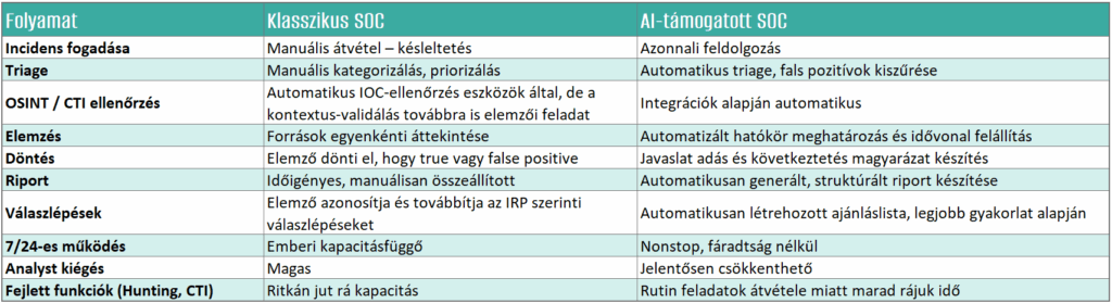 Klasszikus vs AI-támogatott SOC – összehasonlítás lépésenként